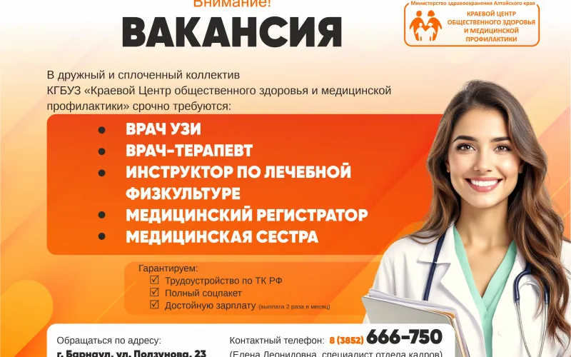 На этой неделе специалисты Центра общественного здоровья принимают жителей Солтонского, Краснощековского и Крутихинского районов.